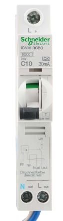 Schneider A9D11810 – RCBO, 10A Current Rating, 1P+N Poles, 30mA Trip Sensitivity, Acti 9 Range