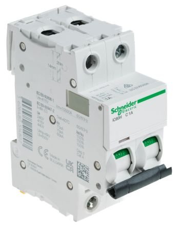 Schneider Electric Acti9 Miniature Circuit Breaker, 2 Pole, 1A – iC60H Series – A9F54201Help prevent premature equipment ageing and overheating with t…