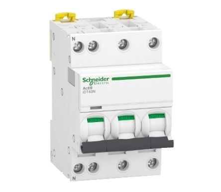 A9P34720 – Schneider Electric Acti 9 Acti9 iDT40N MCB, 3+N, 20A Curve D, 400V AC