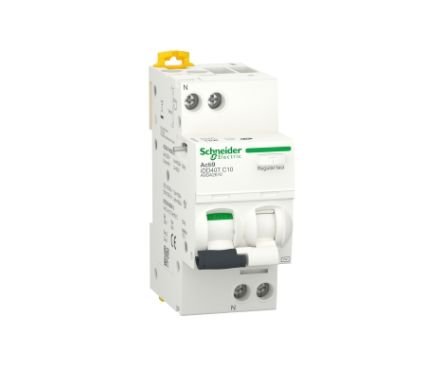 Acti9 Range Schneider Electric RCBO, 10A Current Rating, 1P+N Poles, 30mA Trip Sensitivity, Type C, A9DB2610