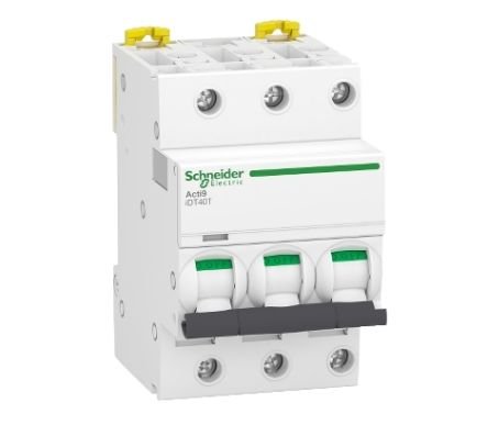 Electric Acti Schneider 9 Acti9 iDT40T MCB, 3P, 10A Curve C, 400V AC – A9P22310
