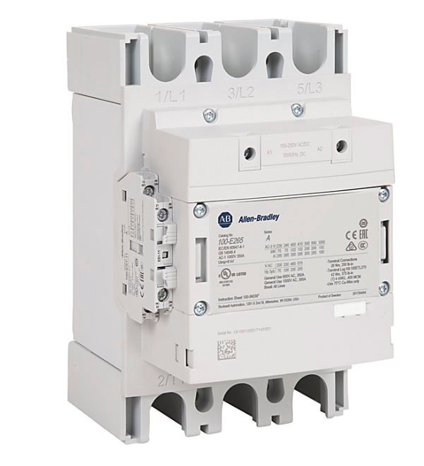 Industrial Allen Bradley 100-E AC Contactor, 100 → 250 V dc Coil, 3-Pole, 370 A, 200 kW, 1NO + 1NC, 400 V ac