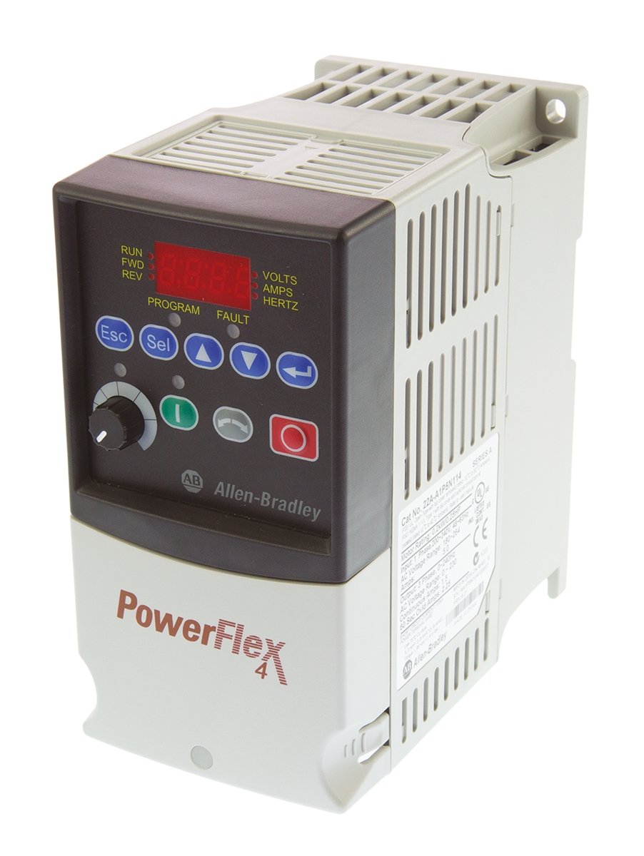 For a compact inverter drive that provides powerful and precise motor speed control, look no further than the PowerFlex 4 AC drives by Allen Bradley. These PowerFlex devices have a space-saving design and can be DIN rail or panel mounted. It is the smallest member of the PowerFlex Variable Frequency Drive family and is designed for optimal flexibility and ease-of-use. It offers an economical alternative for speed control of applications such as pumps, conveyors, fans, machine tools, and material handling systems.