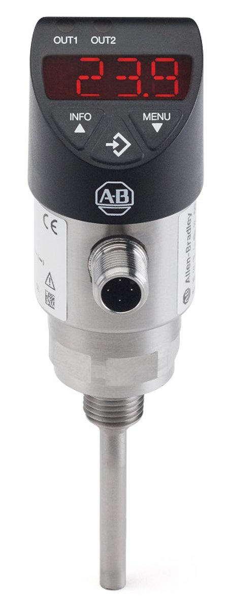 Allen-Bradley 837T solid-state temperature sensors offer a high-accuracy comprehensive solution for measuring temperatures in liquids, gases and vapours. The 837T display model has temperature measurement ranges from -20°C to 80°C and features IO-Link communications protocol. IO-Link allows sensors to easily integrate with the connected enterprise, delivering data from the sensor directly into a control system in an easy-to-use manner. Easy on-machine programming allows the sensors to be configured manually through the Studio 5000 Logix Designer software.