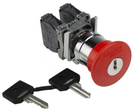 SPDT, IP66, Schneider Electric Harmony XB4 Series Key Release Emergency Stop Push Button, Panel Mount, 22mm Cutout, XB4BS9445